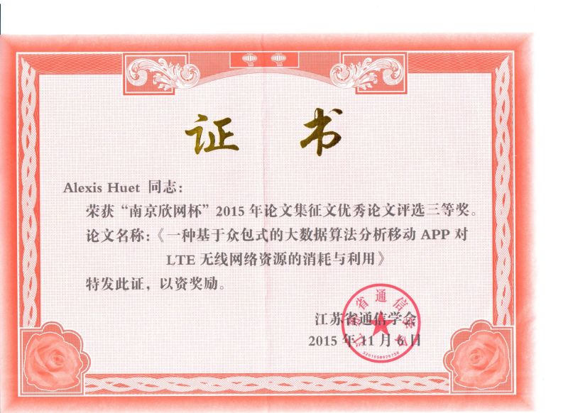 會議期間,評選出了以“互聯(lián)網(wǎng)+”為題材的優(yōu)秀科技論文,于此,華蘇科技 大數(shù)據(jù)產(chǎn)品部高級算法工程 師憑借其獨到的觀點和優(yōu)越的技術實力在“互聯(lián)網(wǎng)+”比賽中榮獲論文三等獎,題名為“一種基于眾包式的大數(shù)據(jù)算法分析移動APP對LTE無線網(wǎng)絡資源的消耗與利用”。
