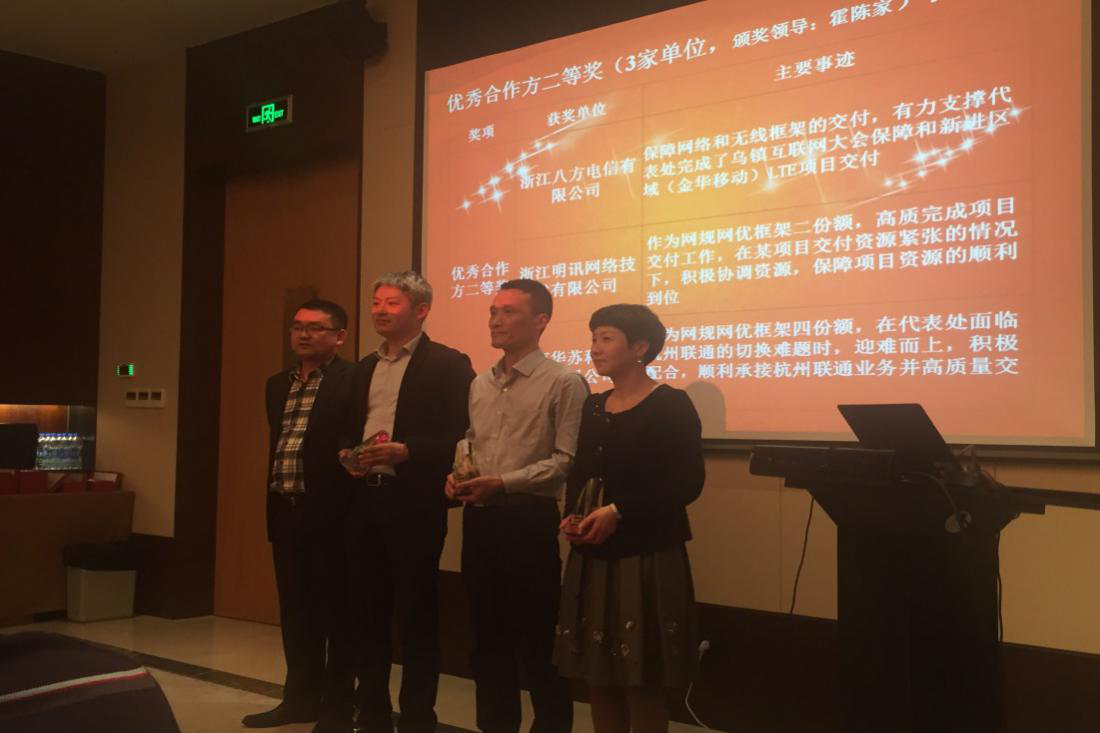 本次會(huì)議根據(jù)合作方的交付質(zhì)量、對(duì)客戶(hù)滿(mǎn)意度的的調(diào)查以及合作資源認(rèn)證率等方面對(duì)各個(gè)合作方做出了中肯切實(shí)的評(píng)價(jià),其中,華蘇科技 不負(fù)華為代表處對(duì)合作方的殷殷期待,以其杰出的綜合表現(xiàn)獲得了“2015年度華為公司杭州代表處優(yōu)秀合作伙伴二等獎(jiǎng)”的殊榮,同時(shí)還受到了“面對(duì)難題,迎難而上,積極配合,交付質(zhì)量高”的良好評(píng)價(jià)。這是對(duì)華蘇2015年付出的所有努力的最好認(rèn)可,同時(shí)也激發(fā)了我們?cè)?016年更要長(zhǎng)風(fēng)破浪、攜手共進(jìn)的決心和動(dòng)力。