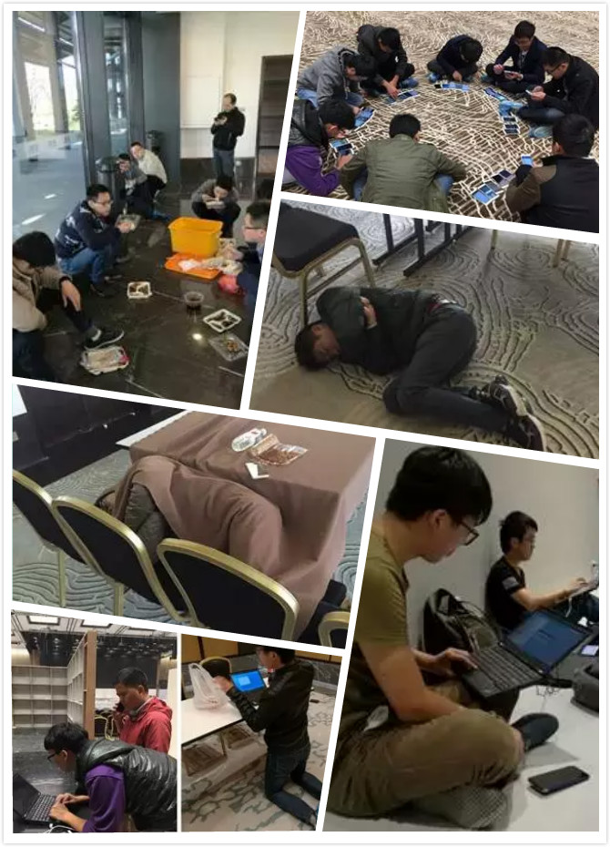 無數個深夜,黑色幕布上仍烙印著他們忙碌的身影,從一個站點到下一個站點,他們一刻不停,只為高效地完成各項保障任務,不讓“責任、誠信、專業、專注”的華蘇精神黯然失色。會場內,他們因為測試所需而千姿百態,蹲、跪、爬、躺……沒有哪一種姿勢駕馭不了,也沒有哪一種姿勢應付不來。如今,大會保障還在繼續,驗證成果的時刻即將來臨,在這段時間里,還有更嚴峻的挑戰等著他們,讓我們一起為他們加油,點贊!