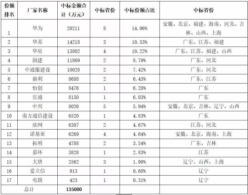 2018年3月5日,驚蟄,一個足以載入通信網(wǎng)優(yōu)史冊的日子,這一天印證了羅振宇在時間的故事里分享的“大者恒大,強者恒強”的預(yù)言,在全國首輪11個省份涉及44.63億元的網(wǎng)優(yōu)集中采購招標盛筵中,華蘇一舉斬獲江蘇第1份額,福建第1份額和廣東第4份額(簡稱114),整體份額僅次于華為。