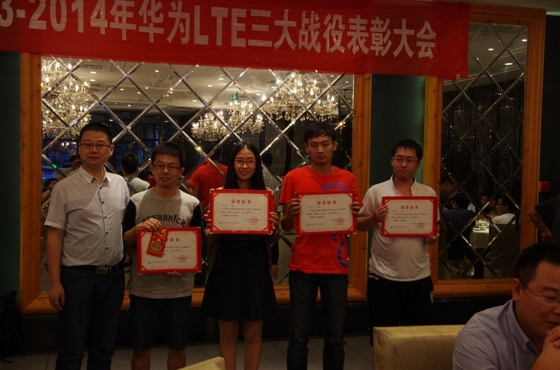 ? 2014年2月,獲LTE三大戰役優秀質量獎,李晶、吳峻、王曄獲華為優秀個人。