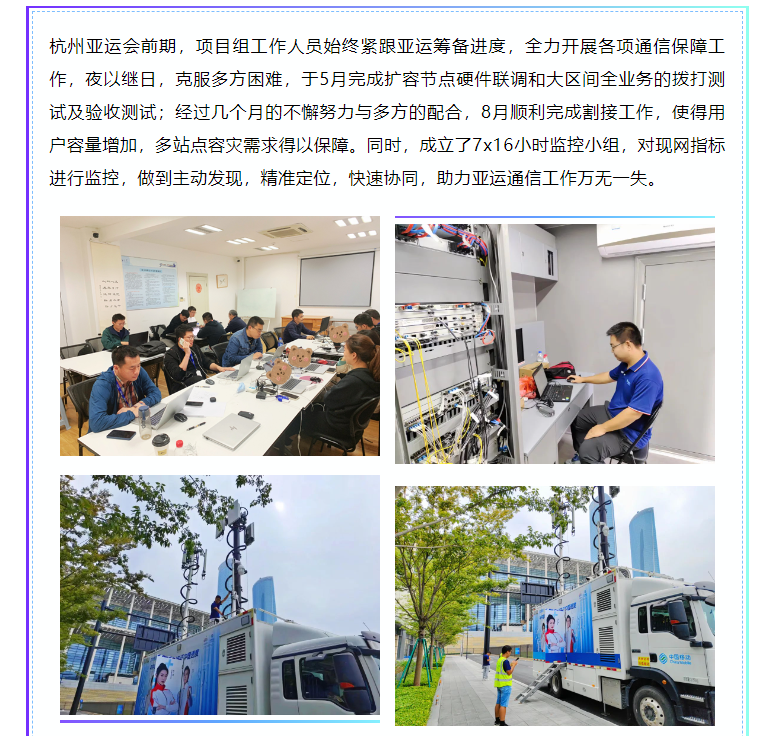 共同參與這場國際級的體育盛事。為保障此次亞運會圓滿舉辦,確保開幕式、各項賽事活動等通信網(wǎng)絡暢通,
