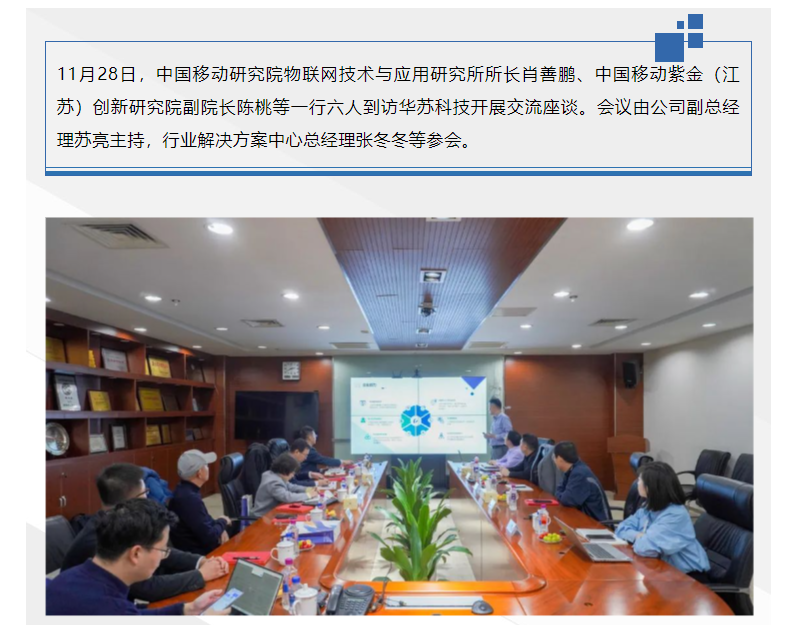 中國移動研究院物聯網技術與應用研究所所長肖善鵬、中國移動紫金(江蘇)創新研究院副院長陳桃等一行六人到訪