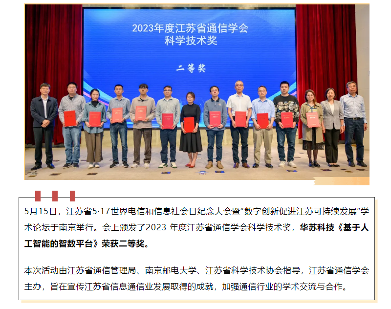 華蘇科技榮獲2023年度江蘇省通信學(xué)會(huì)科學(xué)技術(shù)獎(jiǎng)二等獎(jiǎng)