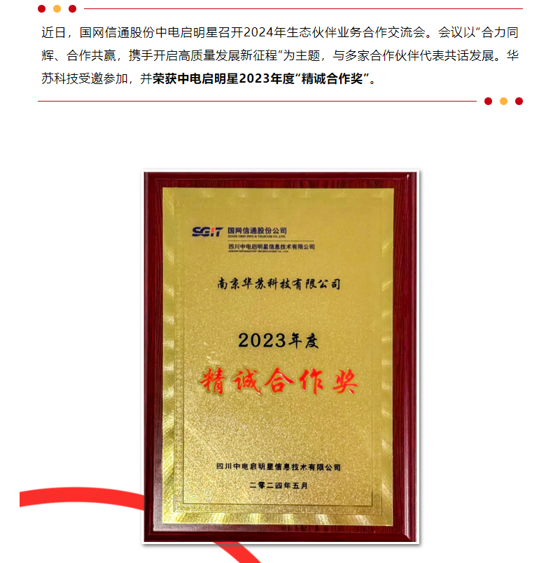 華蘇科技榮獲中電啟明星2023年度“精誠合作獎”