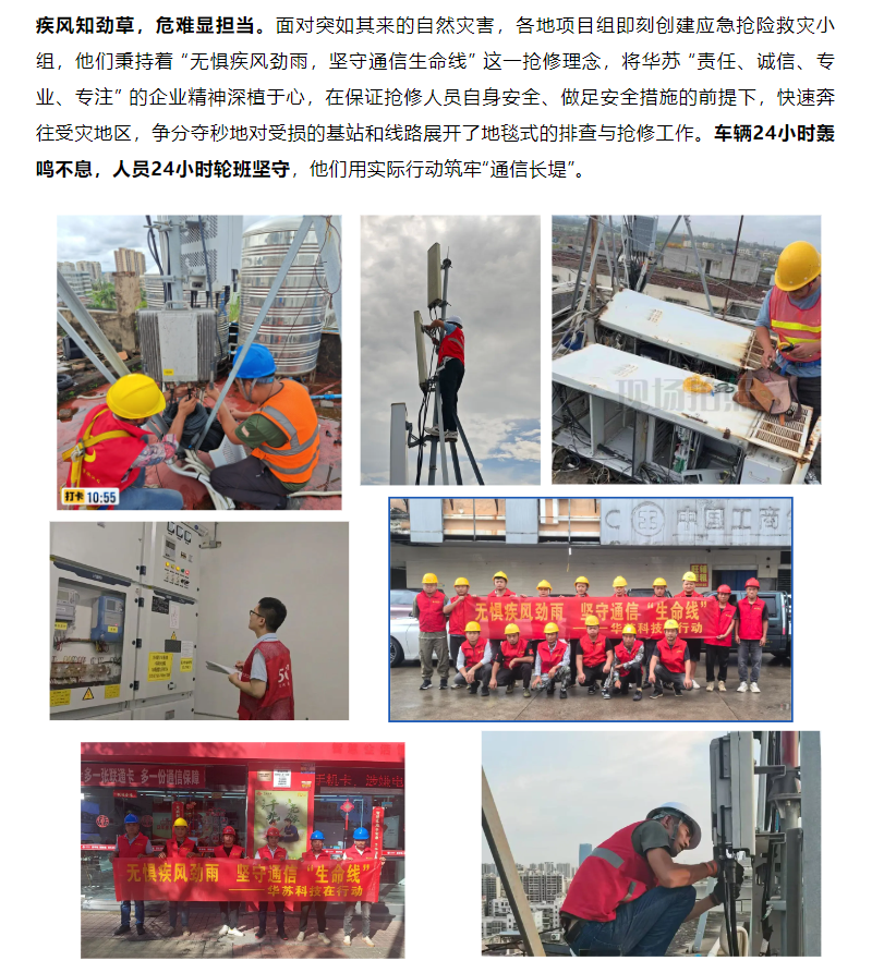 華蘇科技 海南、葫蘆島等地項目組在自然災(zāi)害面前毫不畏懼,積極投身各地保障工作一線,夜以繼日搶修。
