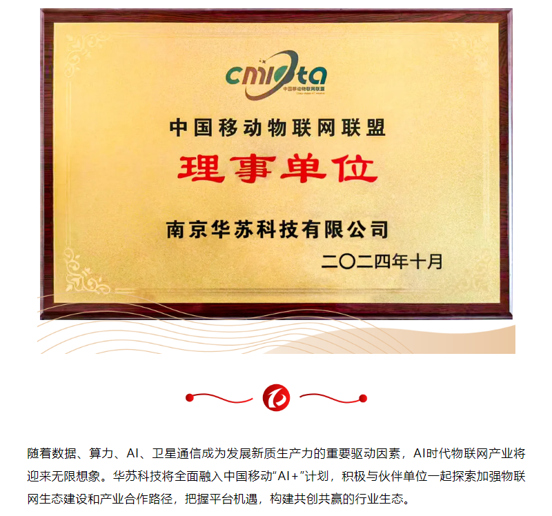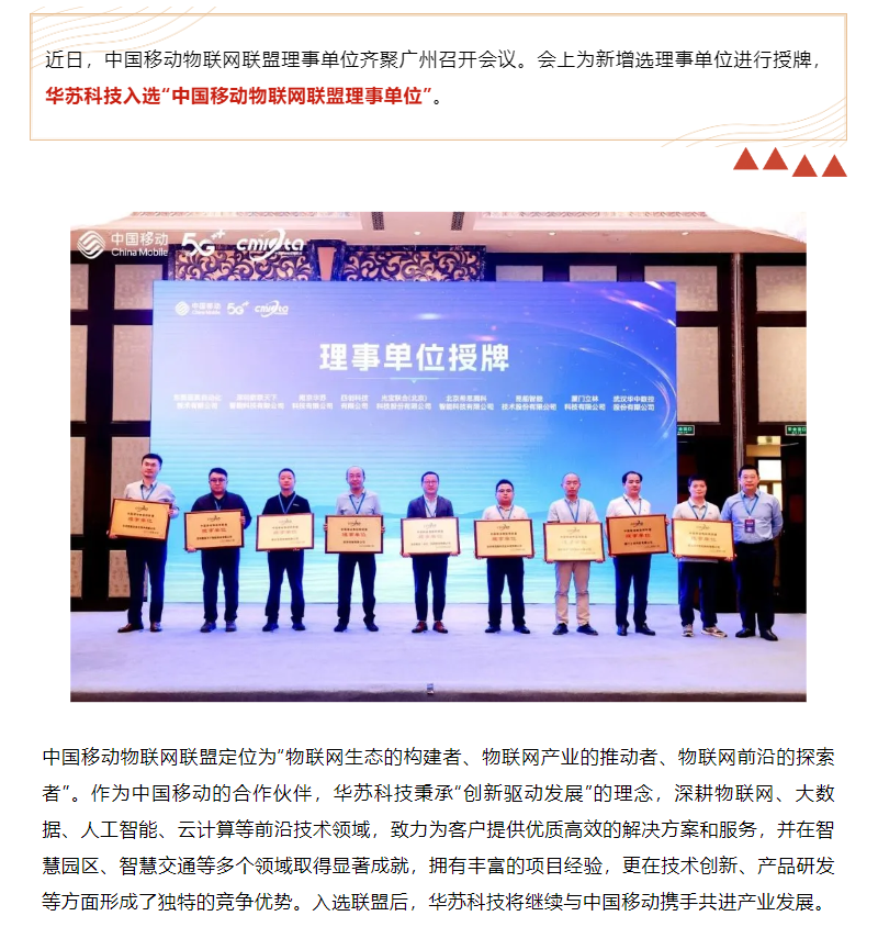 華蘇科技入選“中國(guó)移動(dòng)物聯(lián)網(wǎng)聯(lián)盟理事單位”