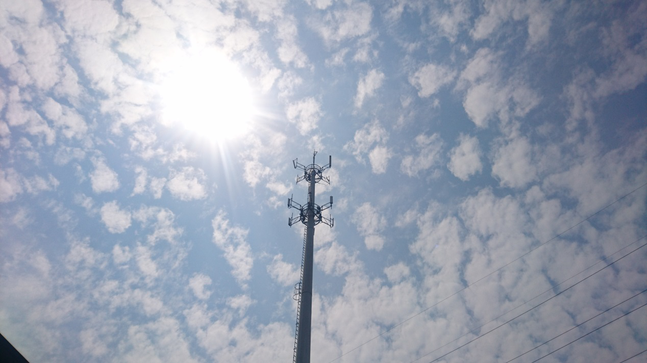 1、仰望天空,不是文藝,只是仰望那高塔的天線和正在調整的塔工。